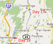 5:45 PM - Doug is out in his motorboat and says that the guys are expected to reach the Lake George Club at about 7PM (see map). It is just a stone's throw from there to Cleverdale, which is the finish.